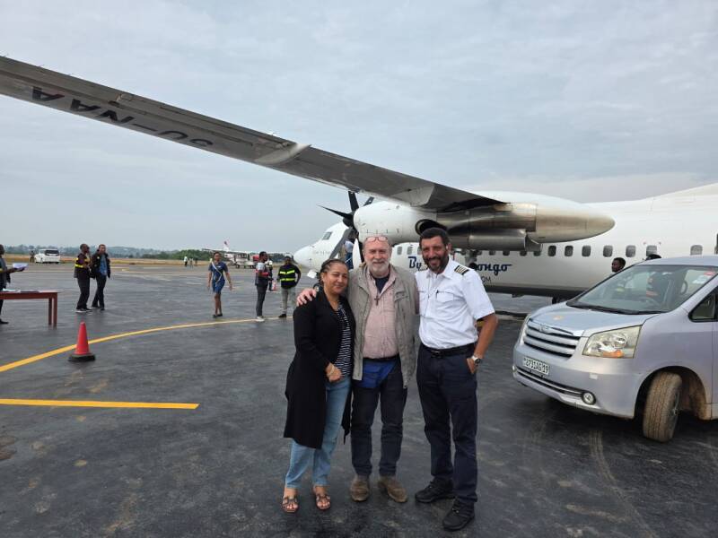 Fin che aspettiamo l'arrivo degli altri passeggeri, mi aggiorna sulla sua famiglia e anche sulla situazione del Congo. Fino all'anno scorso erano resistenti a Goma, ma con presa della città da parte del gruppo dei ribelli dell'M23, hanno portato tutte le loro attività a Bunia.